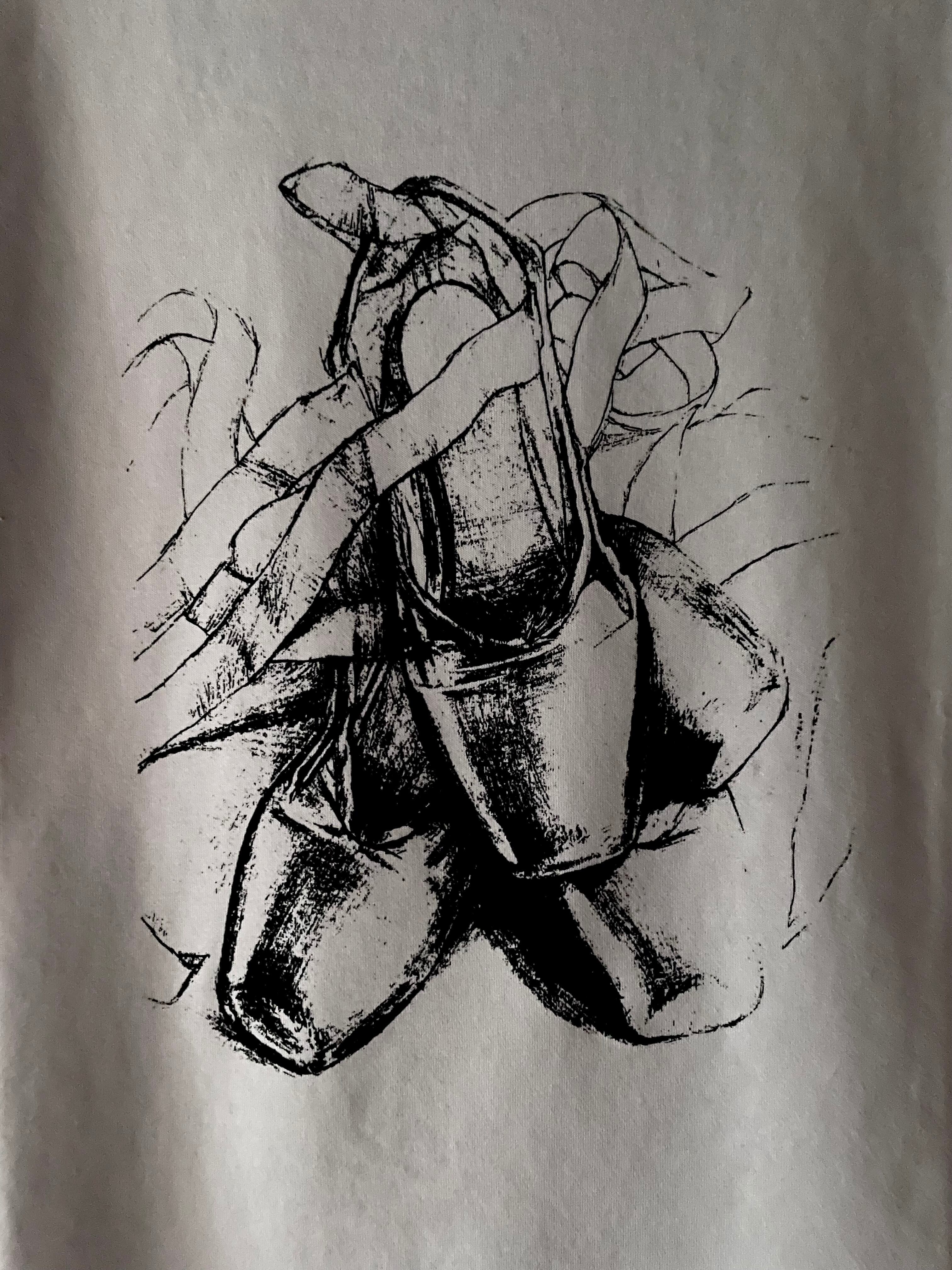 トウシューズを並べて鉛筆デッサンしたものをプリントしました。